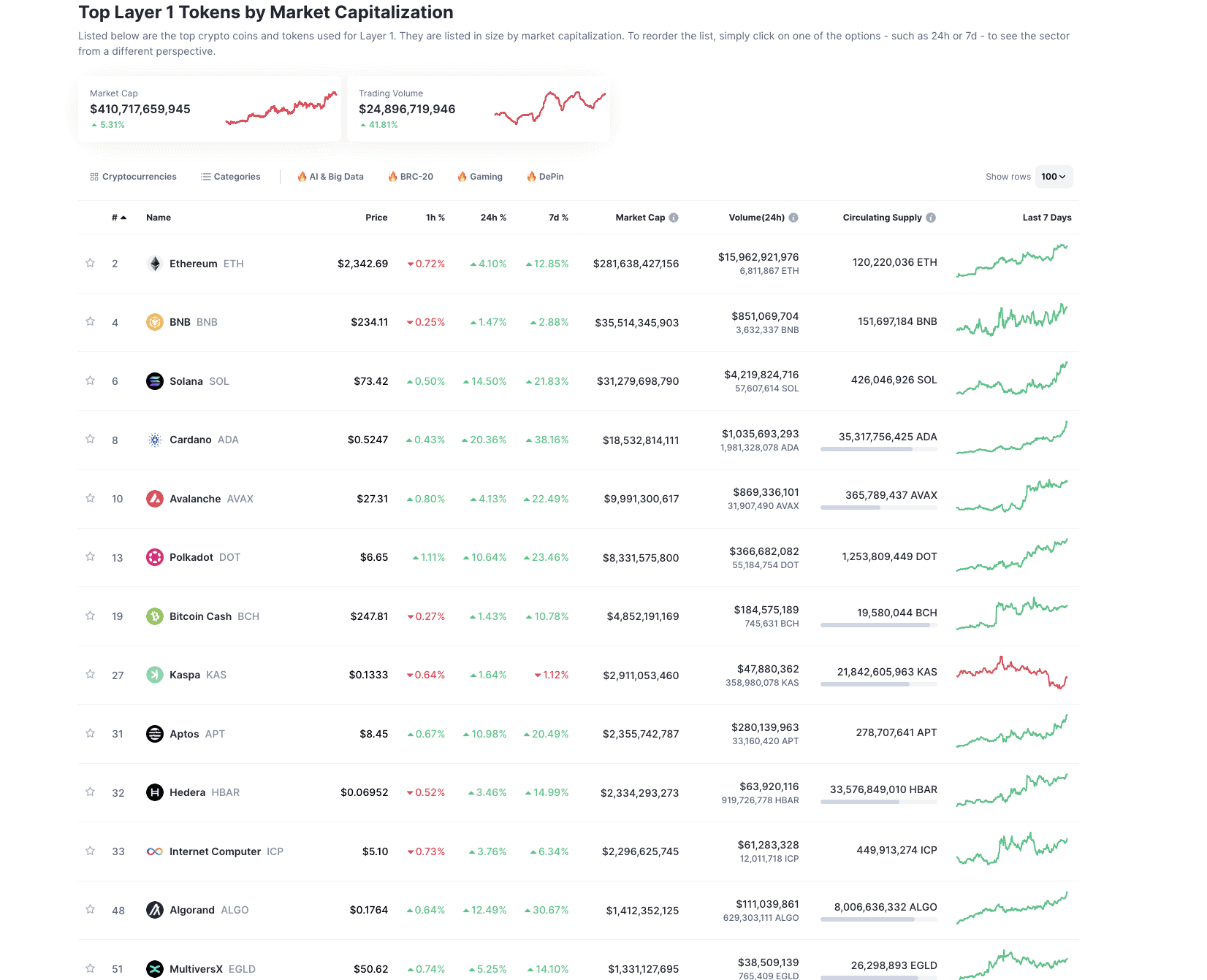The likes of Bitcoin and Ethereum are some of the more established layer-1 chains. These networks have seen significant adoption in recent years. The presence of native tokens can also identify layer-1 chains — BTC for Bitcoin, ETH for Ethereum, and so on and so forth.