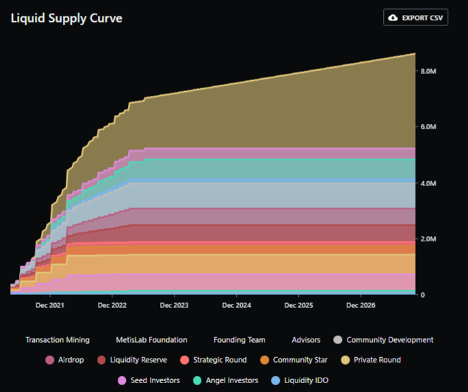 METIS has a max token supply of 10,000,000 tokens. The first 49.3% of the total supply of $METIS tokens was minted in 2021. Altogether, the proceeds went towards the Metis cold launch, team, advisor, investor allocation, and ecosystem/community development.