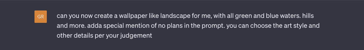 And finally, let us see how good ChatGPT’s Midjourney prompting is when it comes to generating landscape images. Here is our requirement: