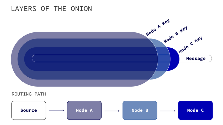 The next person would do the same until the final letter reaches its destination. This way, no one knows where the letter originated or where it is going. They only see who sent them the letter and who they have to send it to next. This is referred to as onion routing, as it is similar to the layers of an onion.