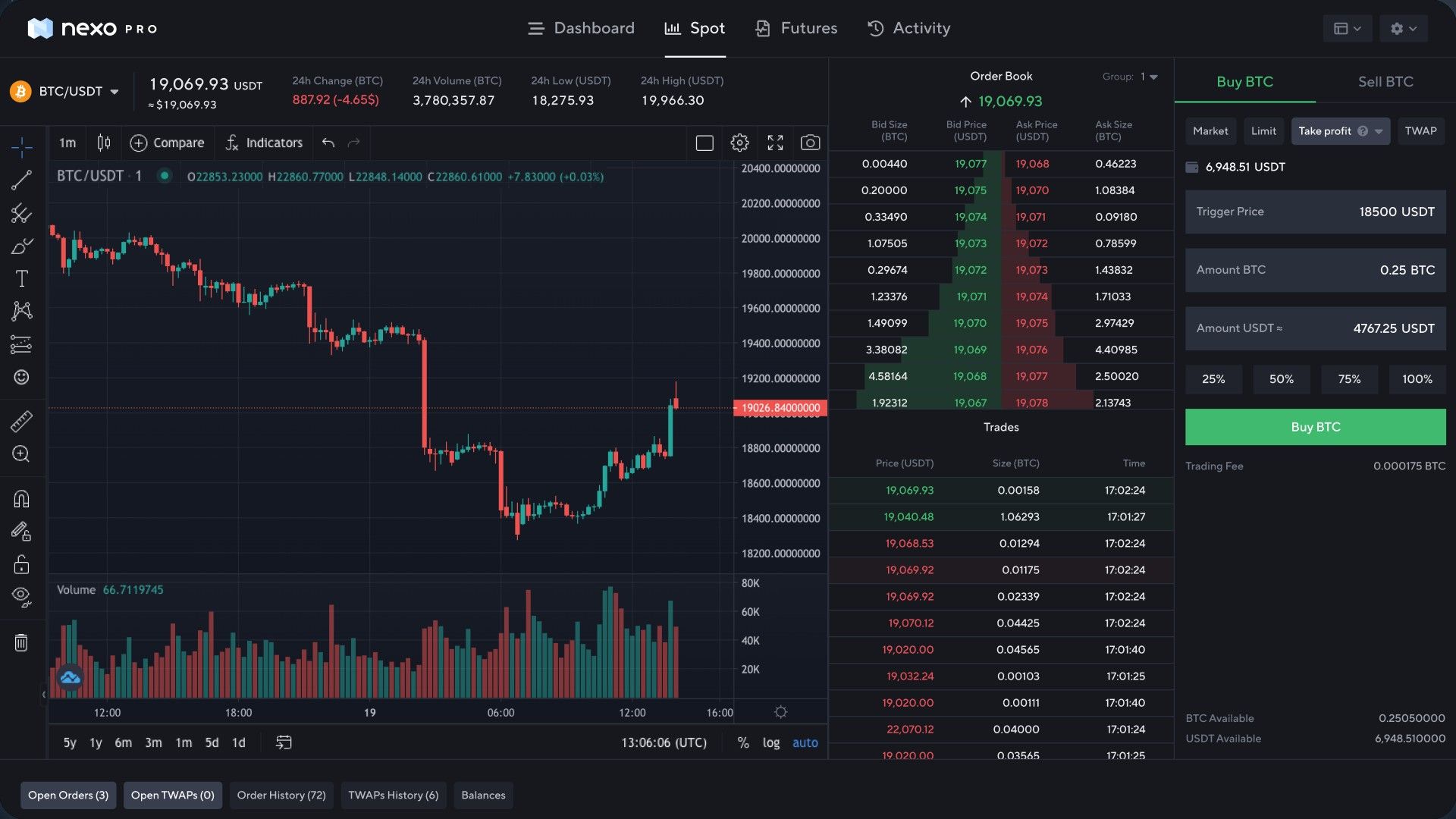 Spot trading on Nexo