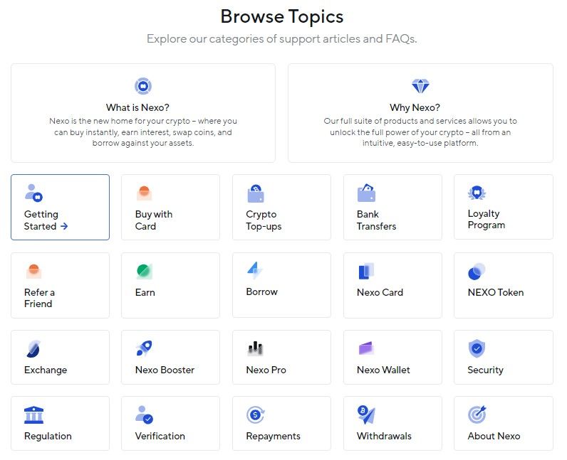 Nexo offers two customer support options. Users can refer to the help center, which has a library of common issues, or open a ticket.