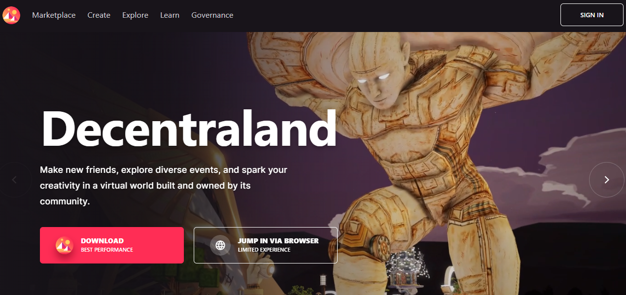 As one of the most popular metaverse projects, Decentraland is a virtual world built on the Ethereum blockchain with various galleries from various artists. You can walk through the metaverse and visit the various galleries.