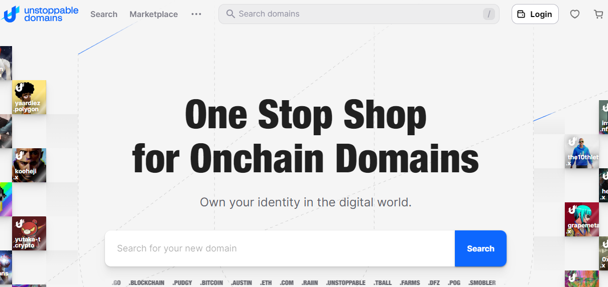 Our first pick is Unstoppable Domains. The platform allows you to replace your crypto address with a human-readable URL, and you can choose between .crypto, .coins, or .nft extensions. Instead of using your Ethereum address, you have a simpler way to send tokens to different addresses, given that the wallet supports Unstoppable domain name services.