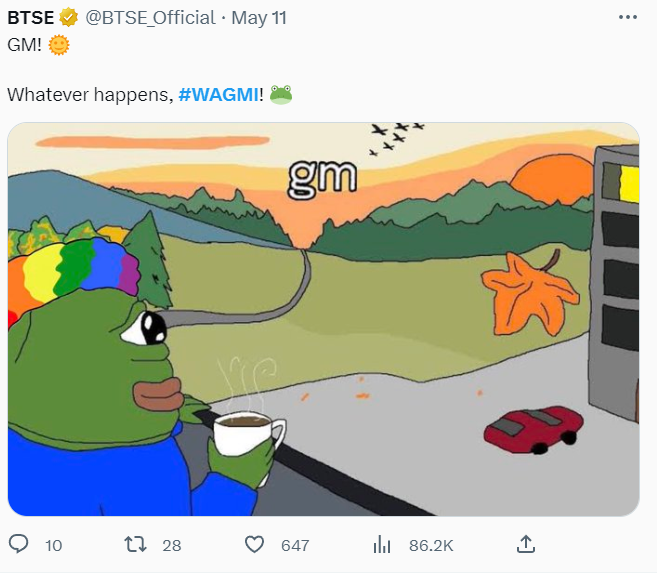 This is a popular Reddit community known for its eccentric investment strategies. From this group, which includes a lot of crypto enthusiasts, WAGMI made it to the crypto scene and is now an integral part of the crypto culture.