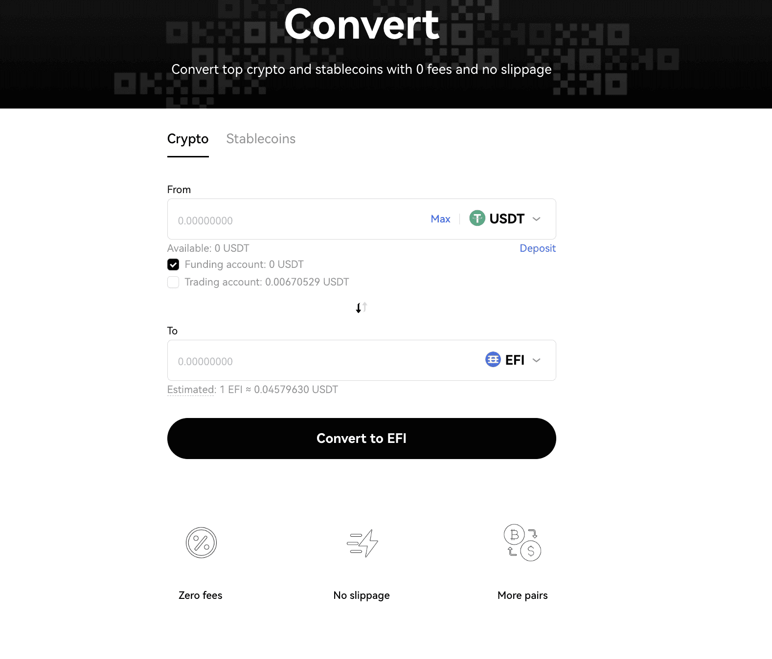 OKX’s crypto converter is one of the more nifty features around. You can convert any crypto to another with zero fees and zero slippage. This feature lets you quickly change holdings, preferably to ride a trading opportunity.