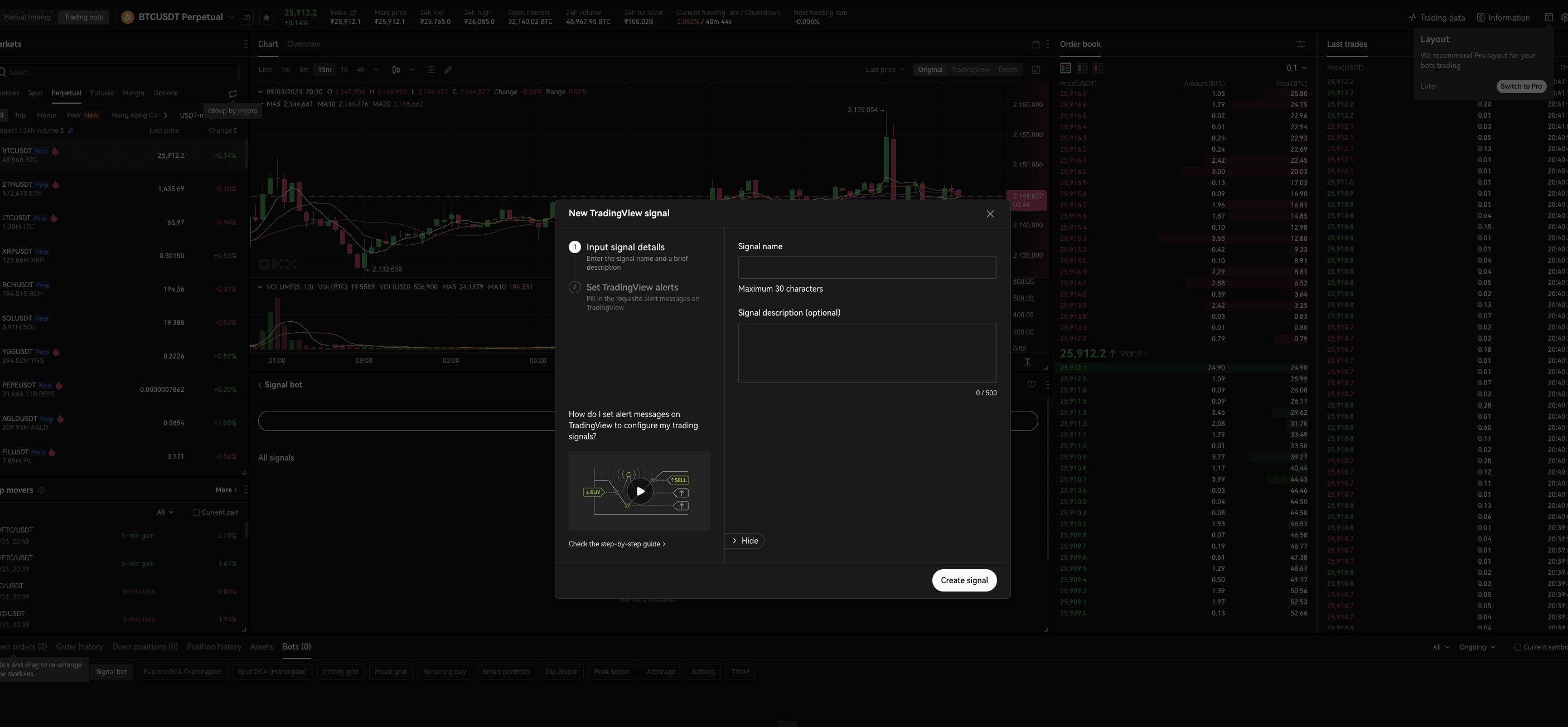 With bots, you can unveil the capabilities of algorithmic trading. You can indulge in grid trading, work with signal bots to get the correct trading signals and use them for arbitrage trades, dollar cost averaging, and more.