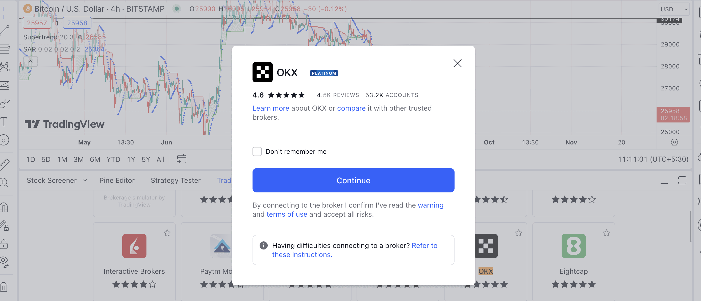 Or, if you prefer detailed TradingView charts, OKX lets you connect accounts and place direct trades whenever you locate a rewarding trading option.