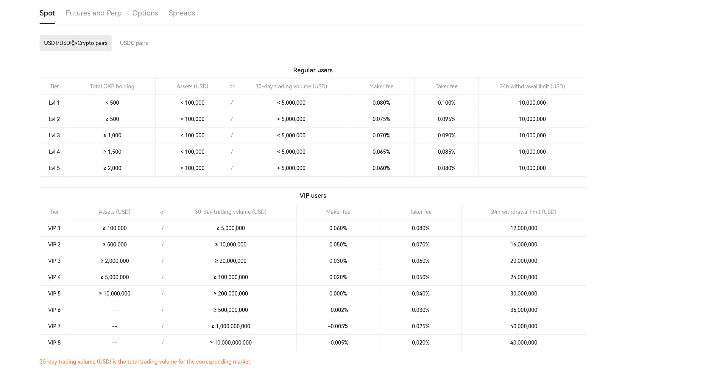 Notably, the charges are lower for VIP users — those with high OKB token holdings and 30-day trading volumes.