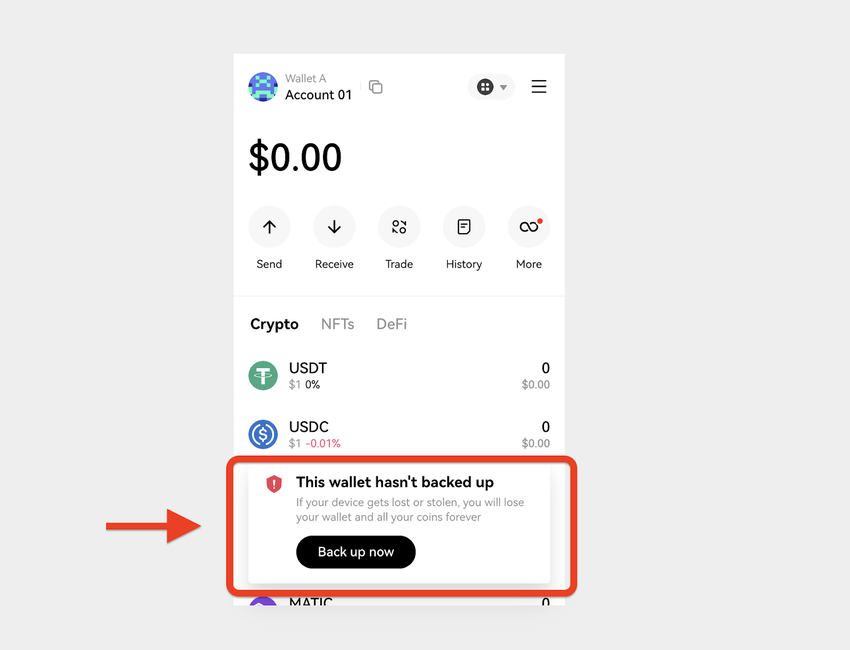 Step 3: Secure your wallet with two-factor authentication and backup phrases