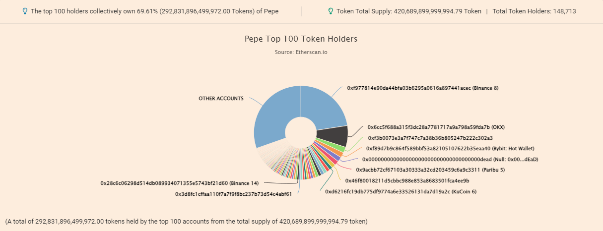 The remaining 6.9% of the supply is securely held within a multi-signature wallet, designated exclusively for future use in centralized exchange listings, bridges, and liquidity pools. This wallet is easily traceable through the ENS name “pepecexwallet.eth.”