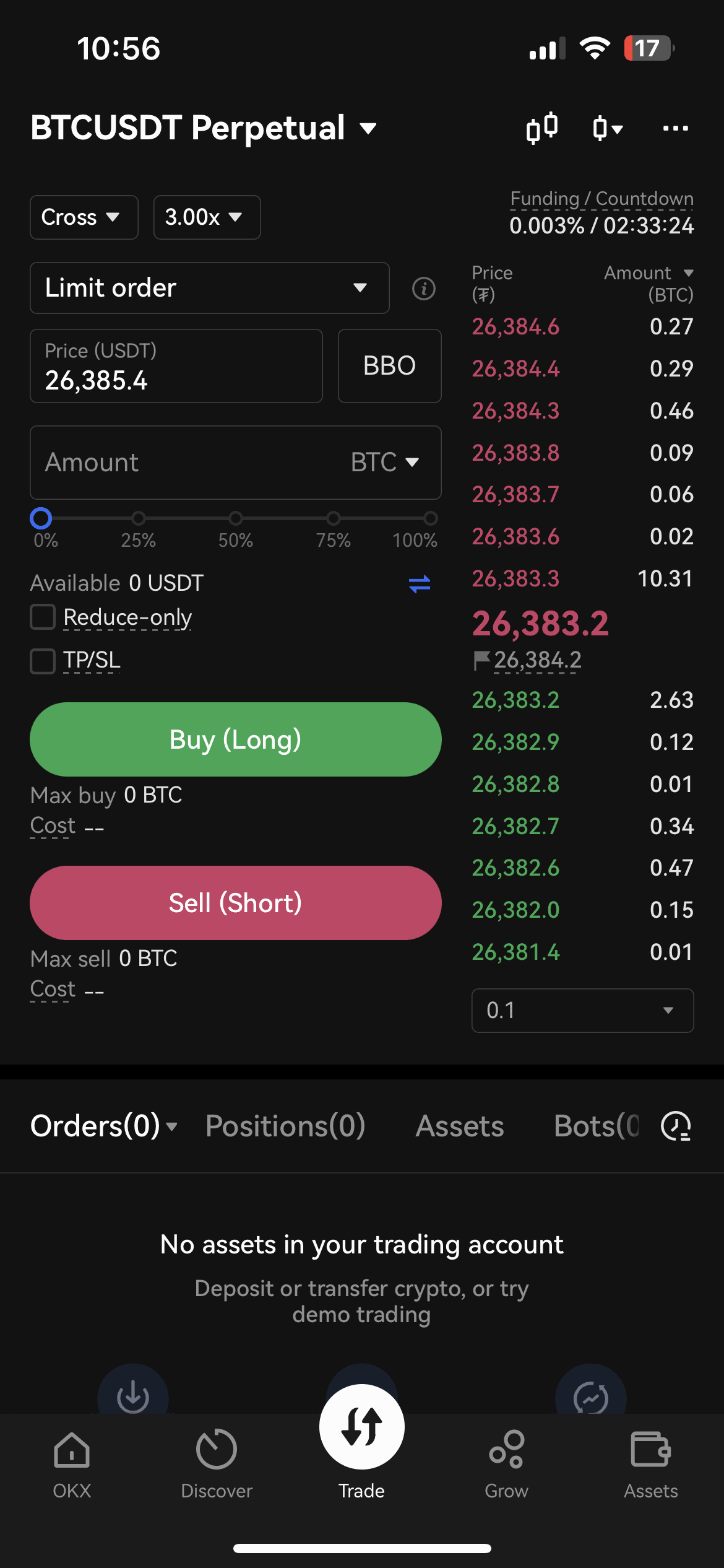 Here is what the BTC-USDT Perpetual dashboard at OKX looks like: