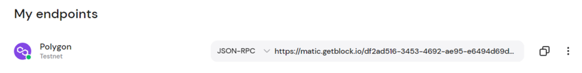 By clicking “Get,” we obtain an endpoint that will connect us to Polygon testnet Mumbai.