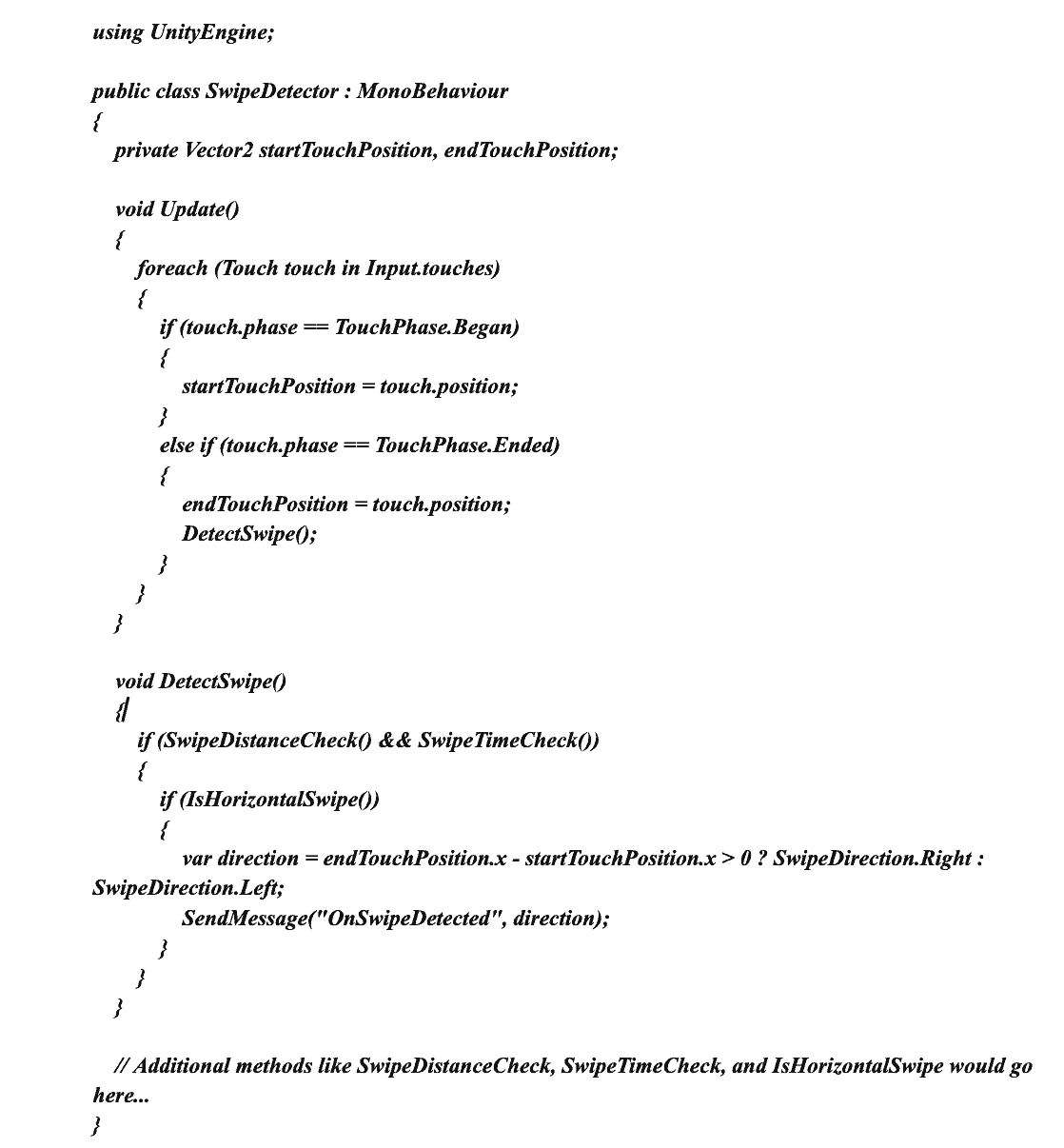 Here is a basic code snippet to detect “swiping” and prepare a corresponding interaction in the virtual realm. This type of code snippet can be used to prepare 3D interactions for shopping stores, allowing you a 360-degree view of clothes and furniture, if needed.