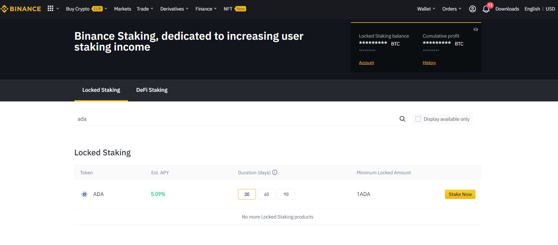 1. Go to Binance Staking Pools. You will need to find Binance Staking and search for ADA.