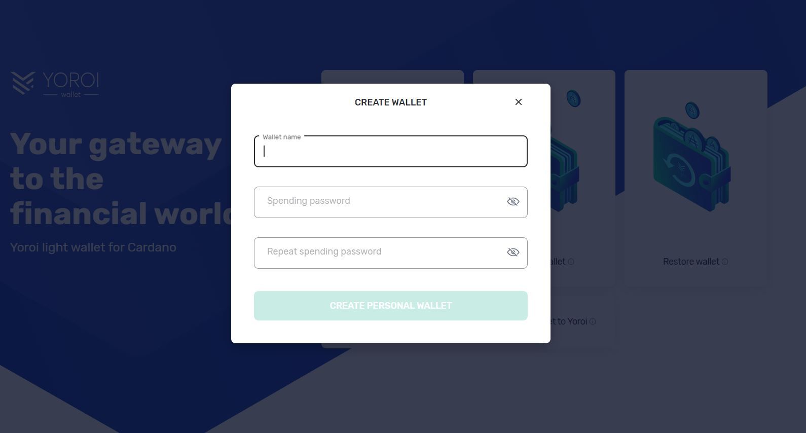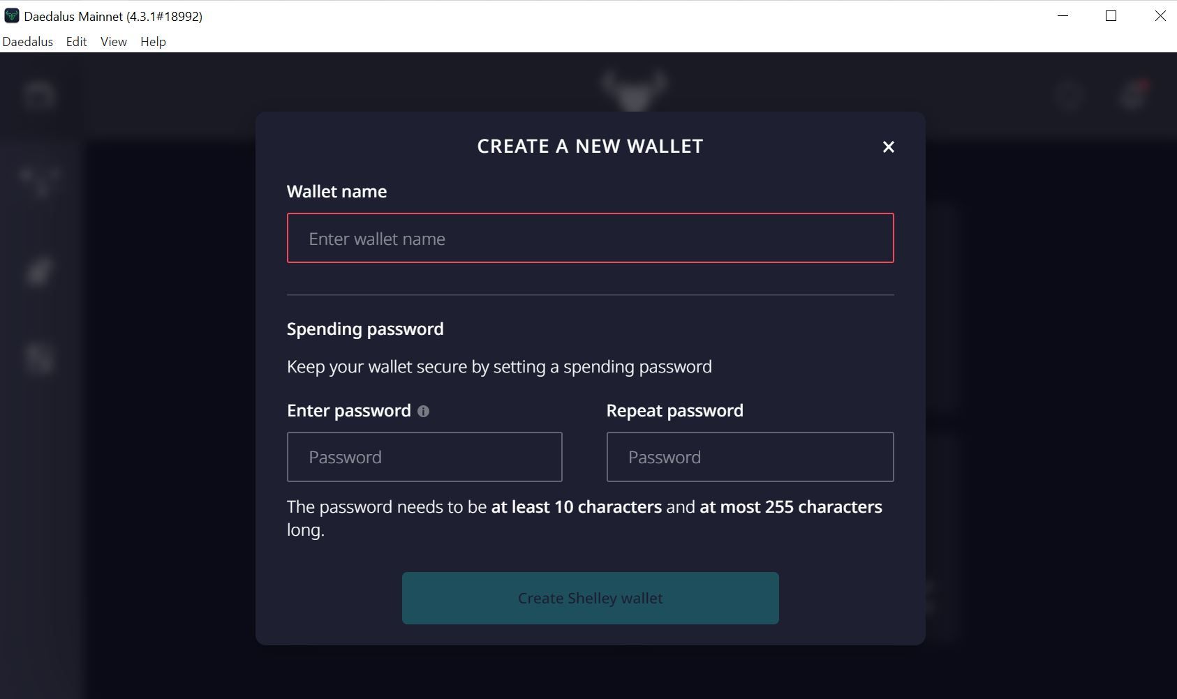 Here, you have to set your wallet’s name and spending password to keep it secure.