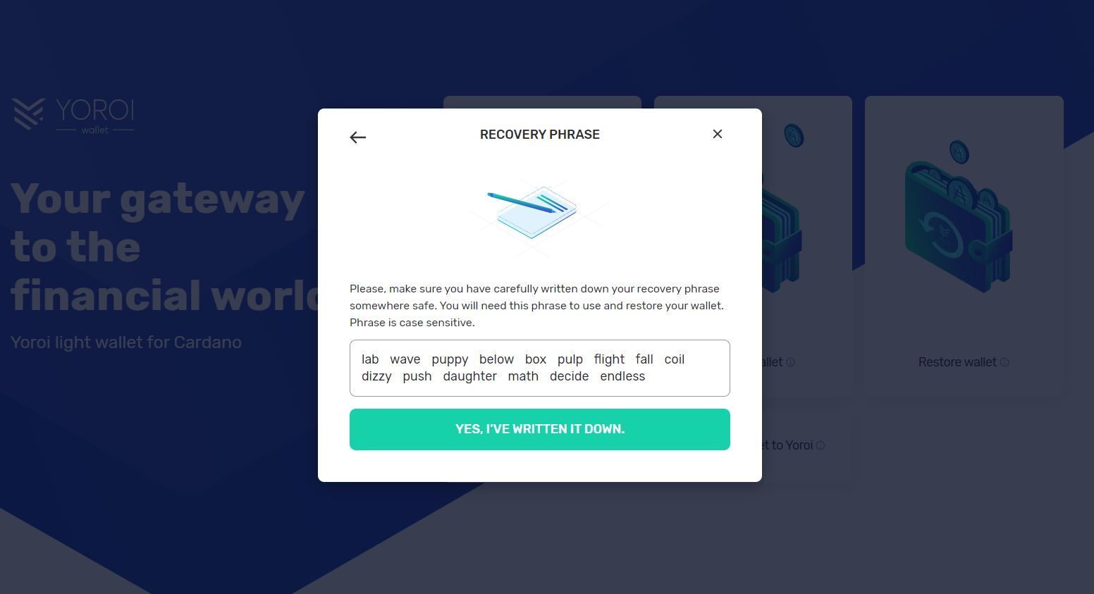 Sponsored Sponsored4. Next, you will be given a 24-word recovery phrase, which is all you will need to recover your wallet.