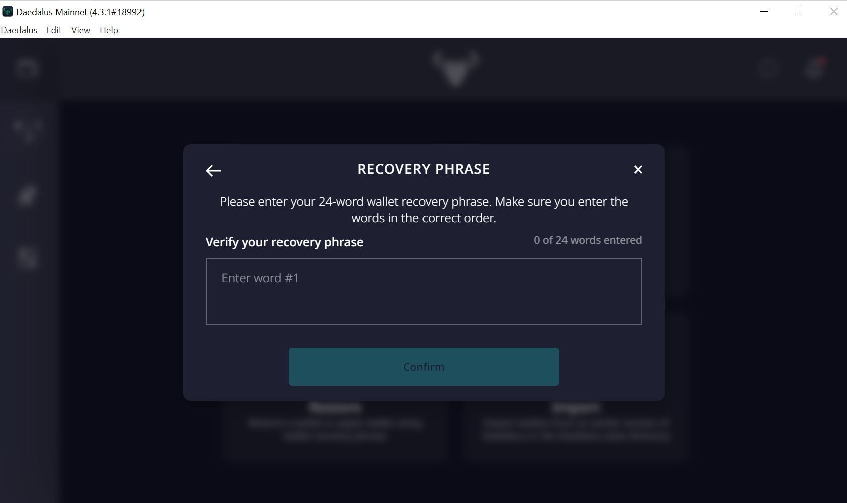 Similar to the Yoroi wallet, you will have to install the Daedalus wallet on your device. Make sure to securely store your seed passphrase, which you will need to recover your wallet in the future in case your device is damaged.