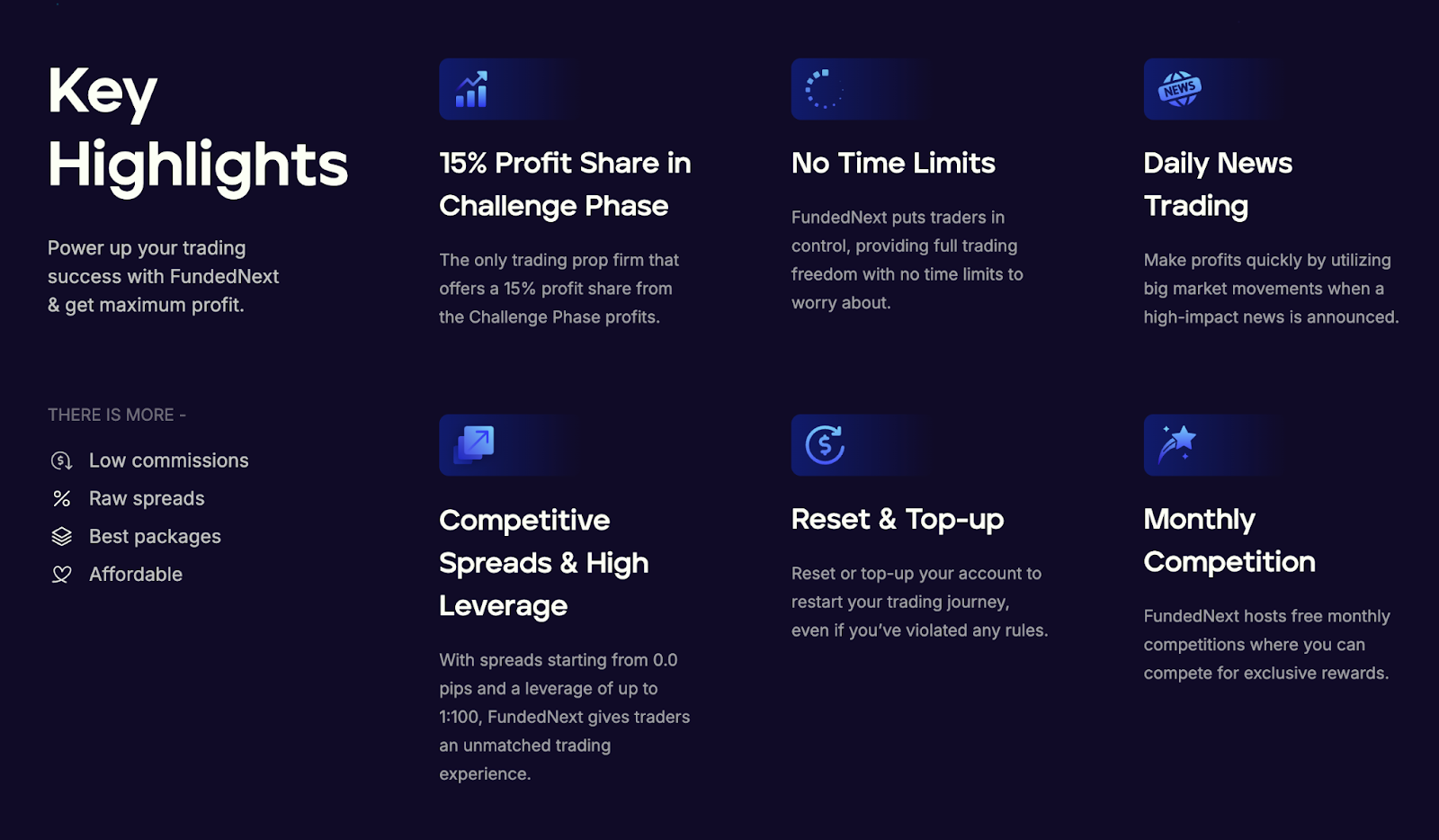- A generous profit split structure. The first $25K is yours, and a 10% fee thereafter.