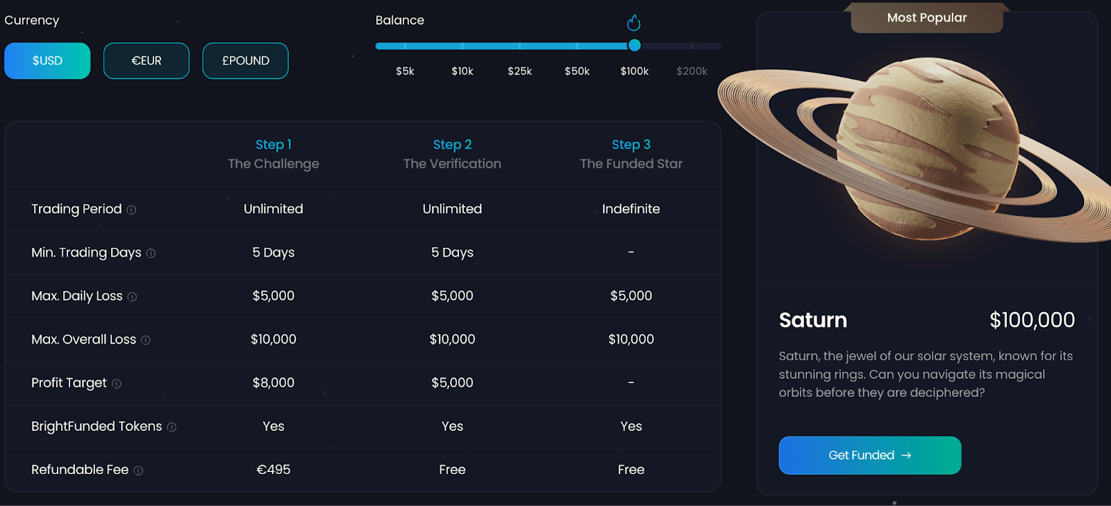 4. BrightFunded: Various account sizes to choose from