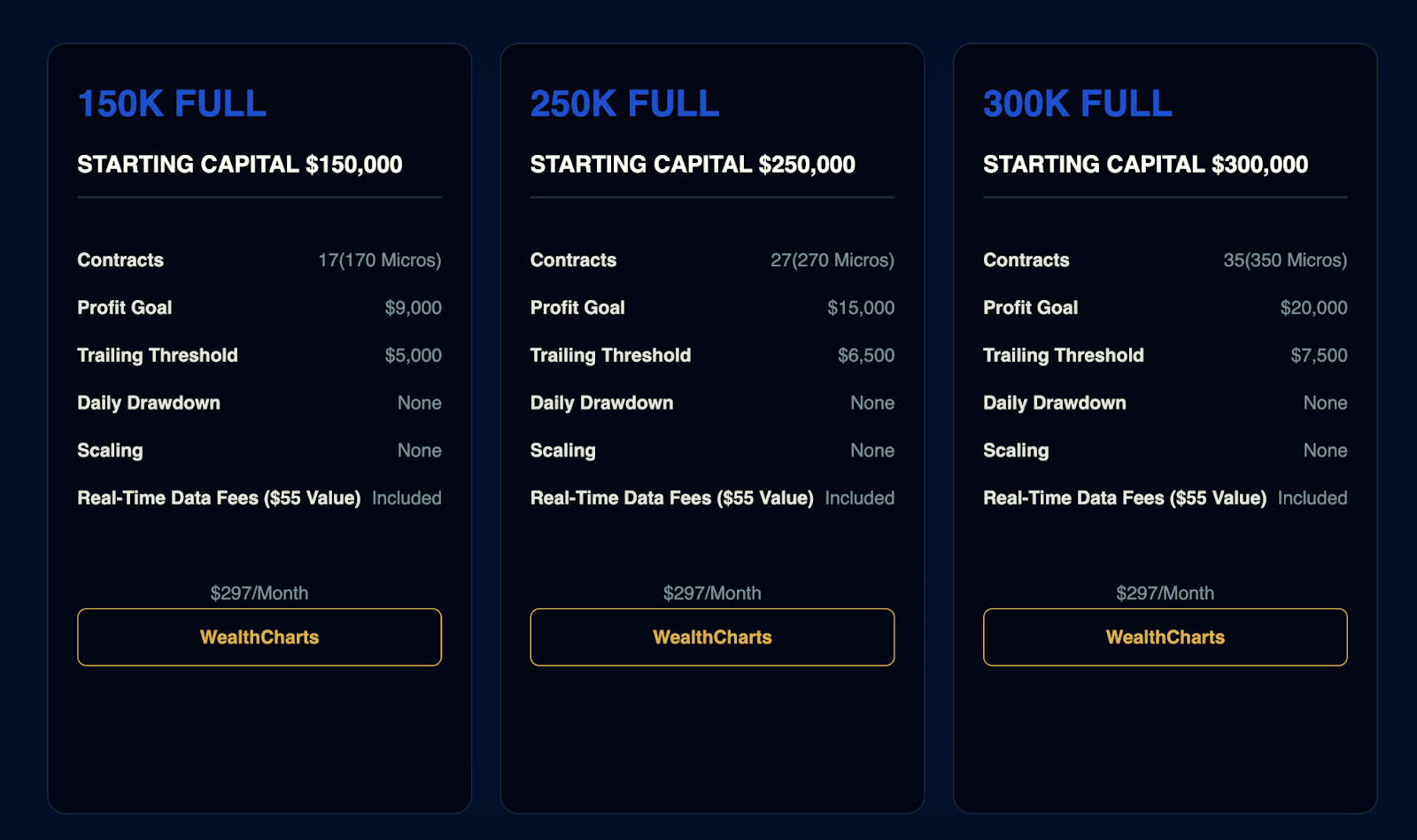Apex Trader Funding is a futures-focused prop trading firm that gives you access to funded accounts through a monthly subscription. Account sizes range from $25,000 to $300,000, each with its own drawdown rules.