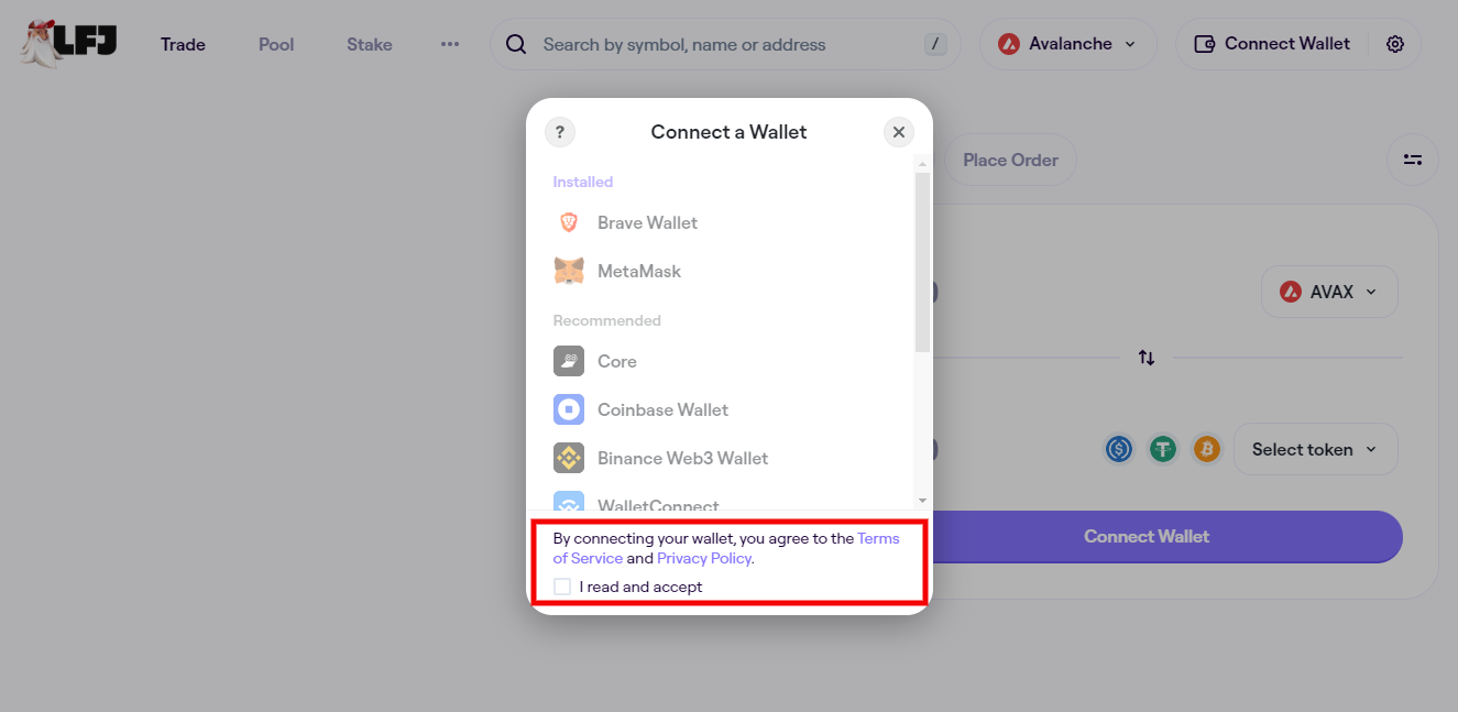 2. Accept the terms and conditions and connect your wallet.