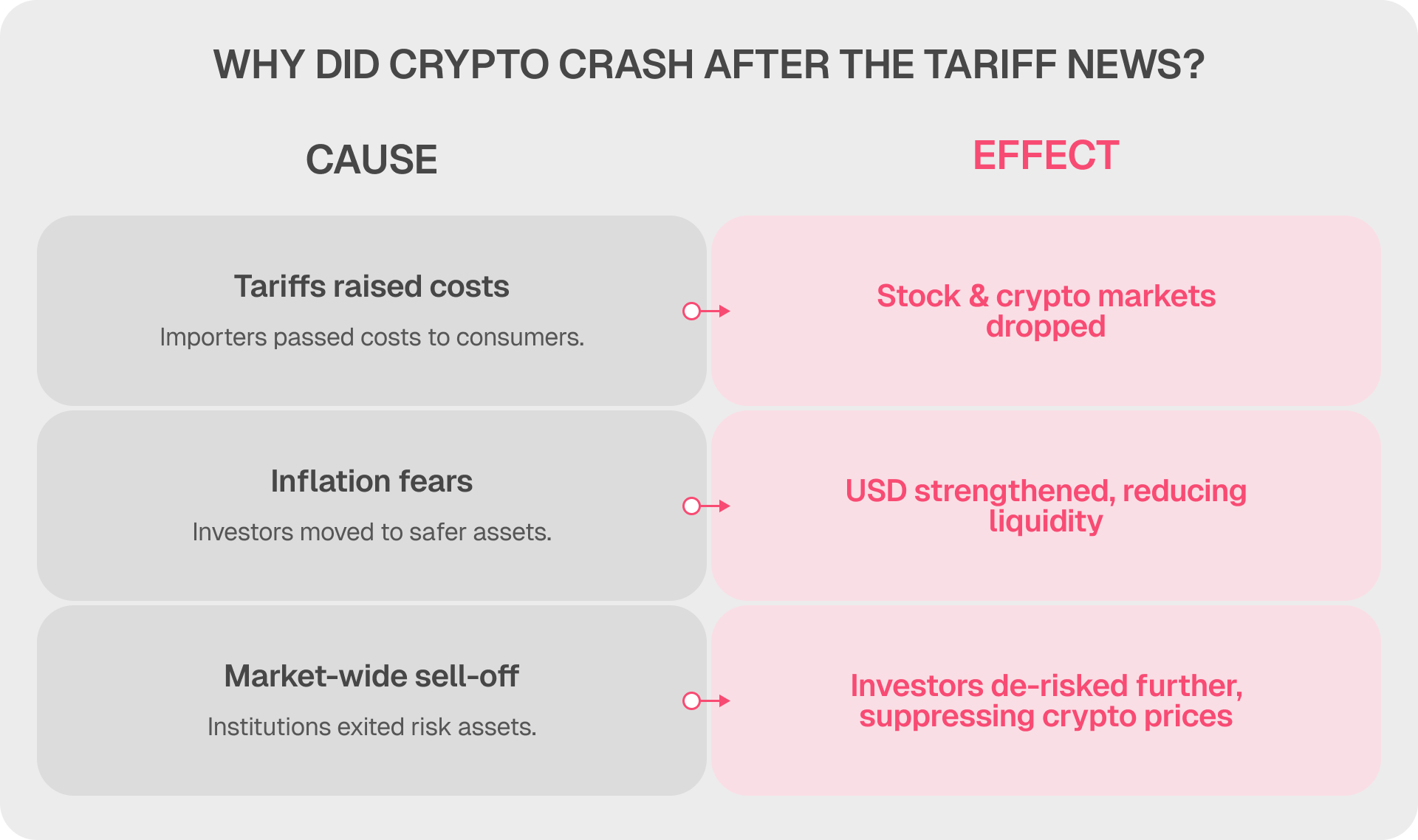 However, this presents a dilemma — cryptocurrency markets are not inherently tied to trade deficits or physical imports/exports in the same way equities might be. So, why did the cryptocurrency market plummet?