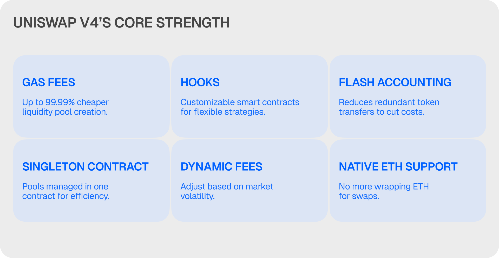 Uniswap v4 is the latest upgrade to the world’s largest decentralized exchange, designed to cut trading costs, improve efficiency, and give users more control over liquidity and fees.