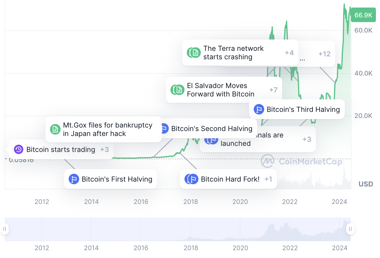 In addition, general media coverage of actions taken by various governments on crypto regulation can have a significant impact on crypto summer. Positive news like the adoption of digital assets by major countries or institutions can result in price spikes. The below chart shows the growth of Bitcoin over the years and the impact of various major events, including El Salvador’s Bitcoin adoption and the impact of various halving events.