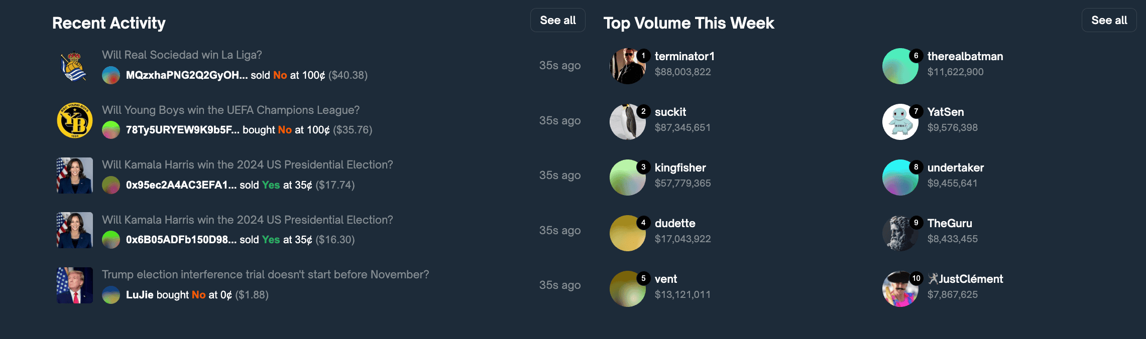 Did you know? Polymarket’s user-driven model has made it one of the most trusted platforms for predictions, with user insights often considered more reliable than traditional polls due to the real-money stakes involved. On the flip side, the model leaves the platform open to market manipulation. Should a small number of accounts make large bets, this could skew odds in a way that does not reflect reality.