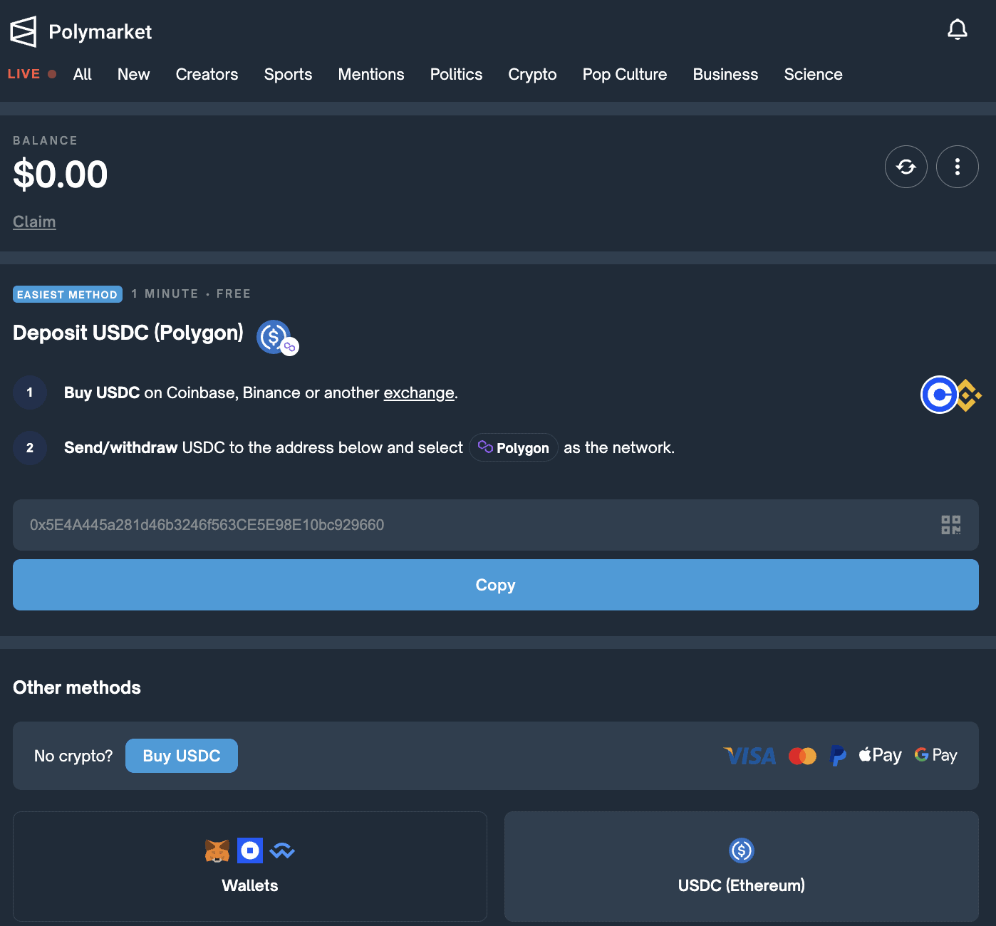 Before you start making predictions on Polymarket, you’ll need to set up your account and fund it. You’ll need USDC and a compatible wallet like MetaMask.