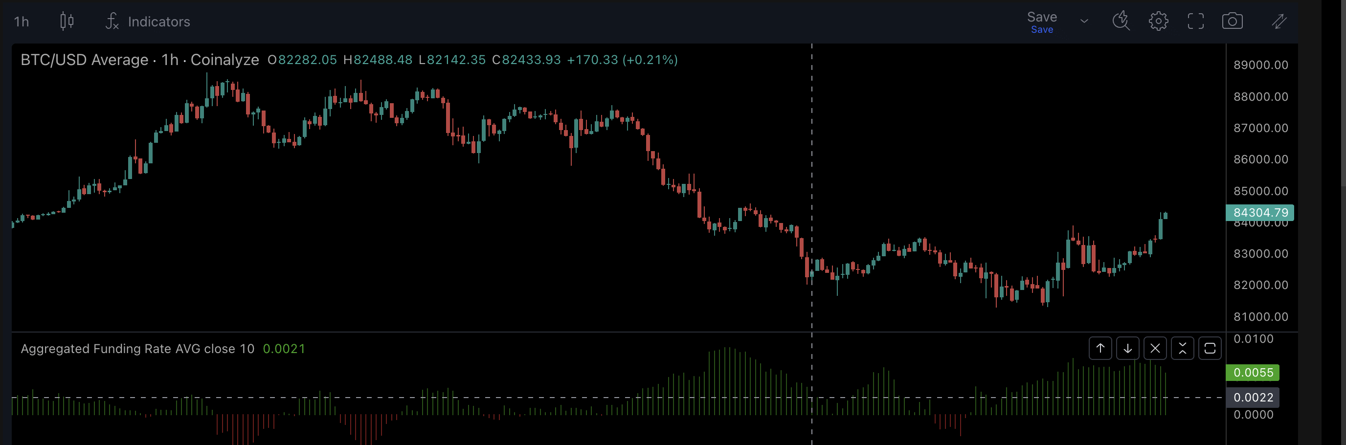 - Funding rates: High funding rates mean excessive leverage — usually a sign of an incoming correction.