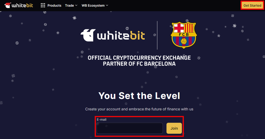 1. Go to the WhiteBIT website: To get the card, you sign up for an account on the WhiteBIT exchange. Go to the website and select register your email.