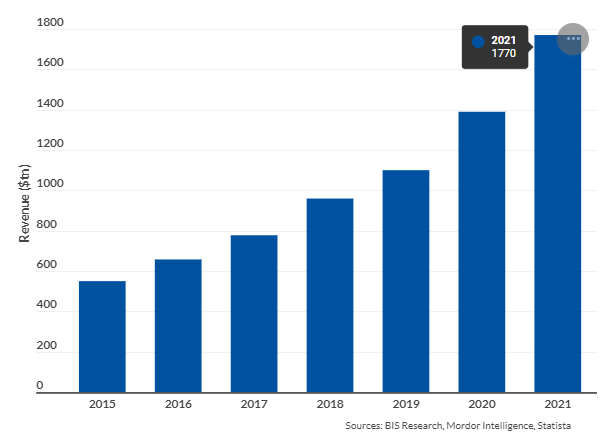 When you add up the drawbacks of TradFi, the rise of payment apps makes sense. The image below shows that mobile payments transaction volume topped $1.7 trillion in 2021.
