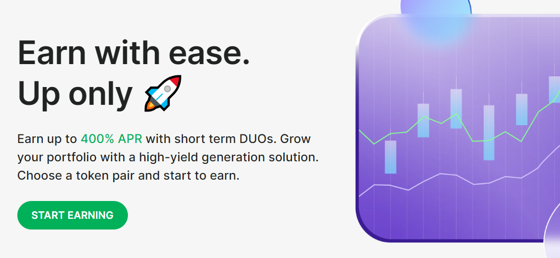 - Earn with DUO: DUO allows you to profit from crypto price stability or decline.