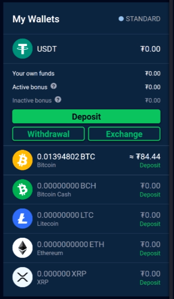Wallets, as you probably know, are where you can store your cryptocurrency. Stormgain offers wallets for every asset you can purchase on the platform, and each one will display how much of the asset you currently have. Furthermore, they can be clicked on for additional information as well as for “deposit” and “withdraw” options.