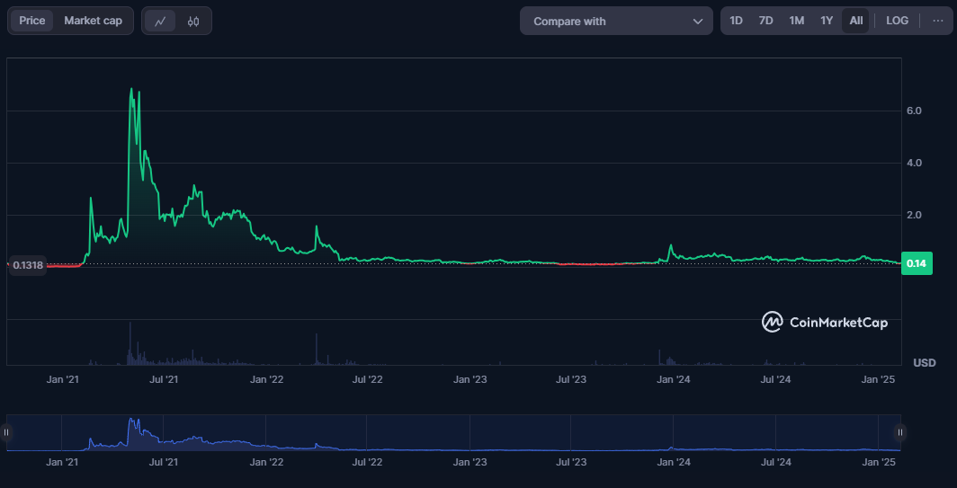 ➤ As of Feb. 10, 2025, BakerySwap has a TVL of approximately $4.45 million. The BAKE token is trading at approximately $0.14.