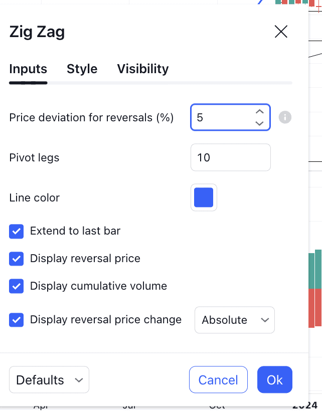 At first glance, the ZigZag indicator doesn’t look like much. It is one of the more basic crypto trading indicators that follows price action. However, how you set the depth and deviation determines how strong the trend identification results are.