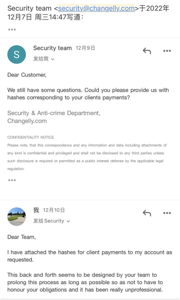 Despite providing evidence of the source of funds, 0xSea.eth assert that the funds have been under review by the platform. However, Changelly reportedly stopped responding shortly after.