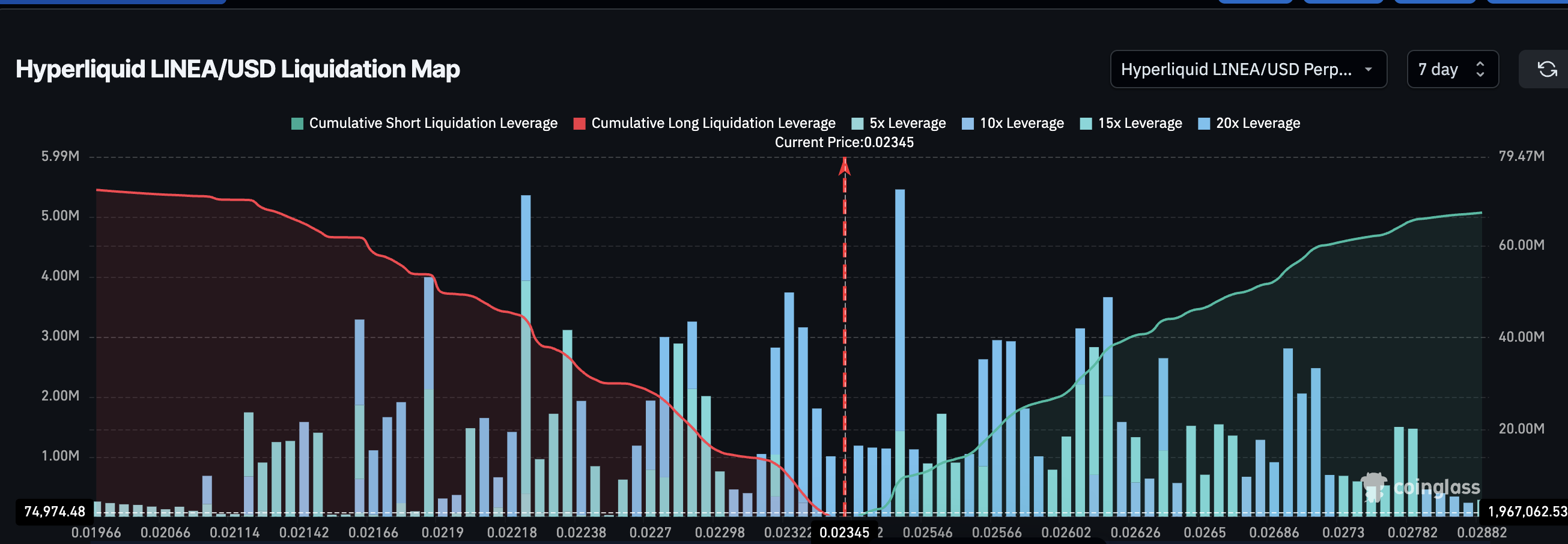 That also means that if the LINEA price drops to $0.019, almost $72 million of long positions would get liquidated. And on the short side, $67 million would be at risk if price heads to $0.028. Therefore, both $0.019 and $0.028 are key LINEA price levels.