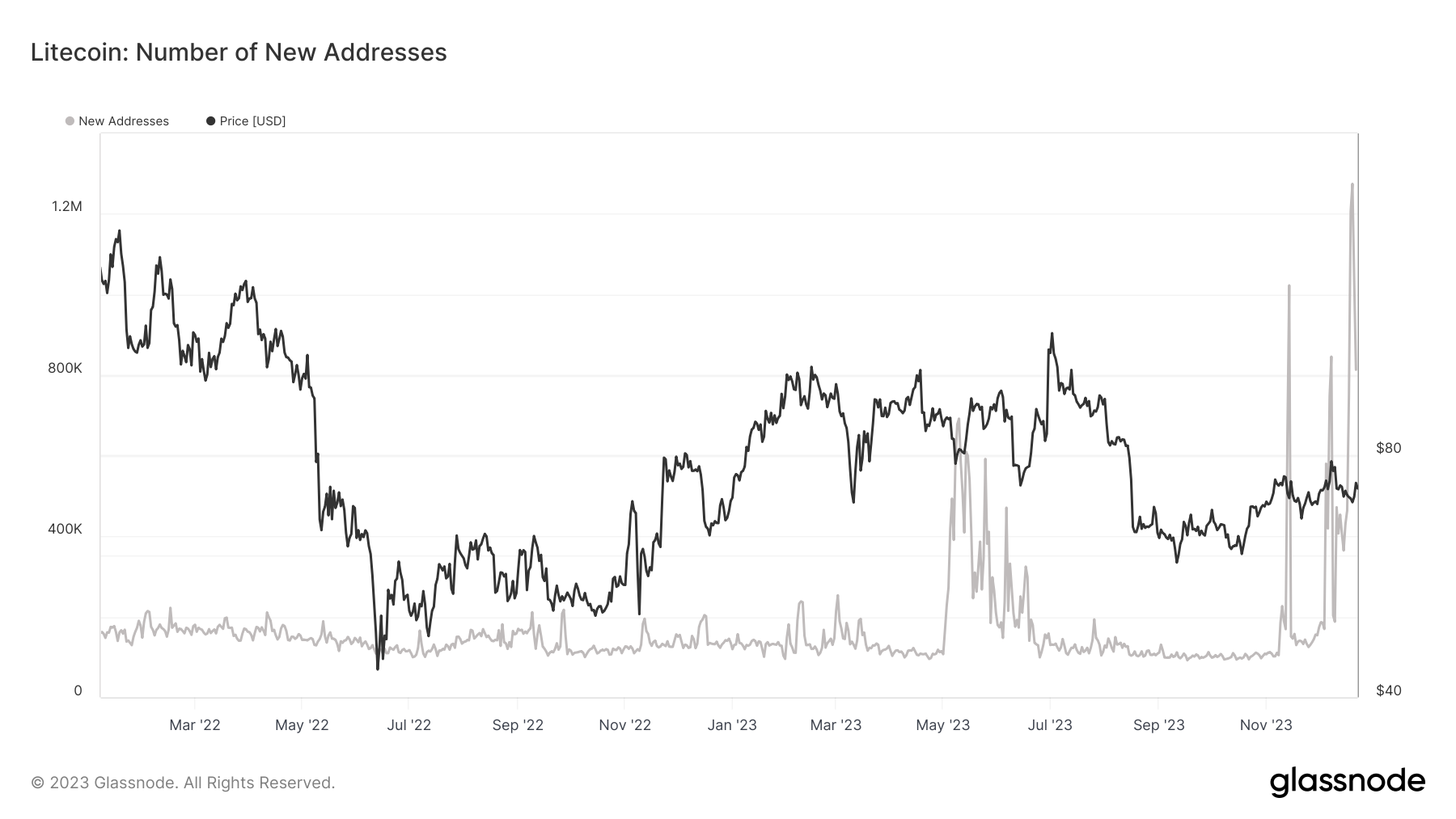 On December 20, Litecoin experienced a notable upswing in new addresses, marking its most substantial increase in two years.