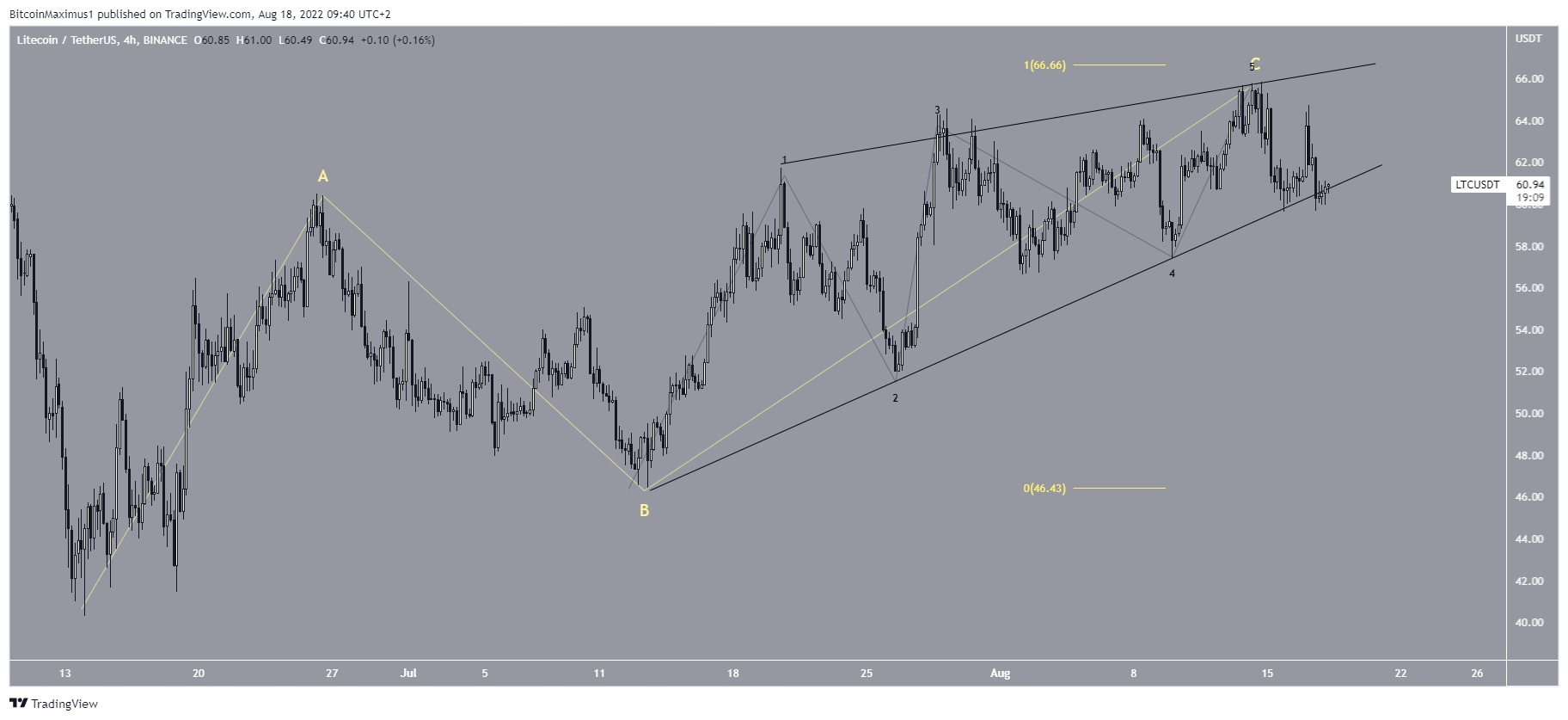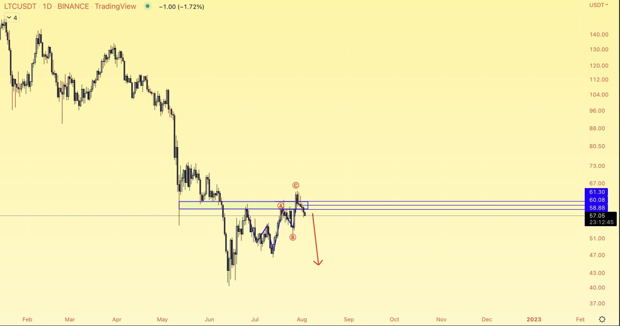 Cryptocurrency trader @Altstreetbet tweeted a chart of LTC, stating that the increase was corrective, and the price is now in a downward trend.