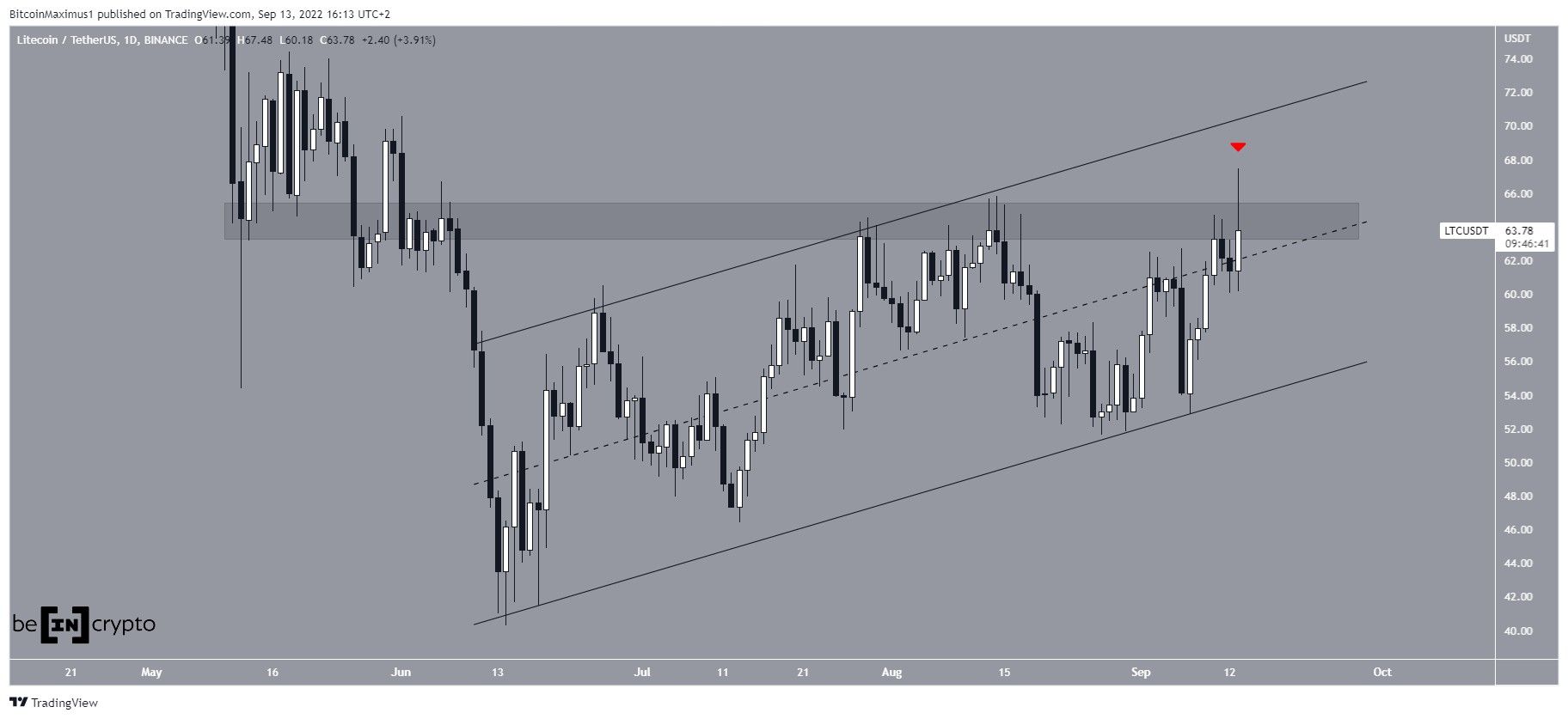 LTC has been moving upwards since June 14. The entire upward movement has so far been contained inside an ascending parallel channel. Such channels usually contain corrective movements, meaning that an eventual breakdown from the channel would be expected.