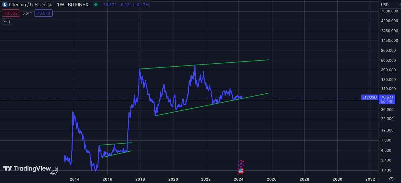 CryptoSurf tweeted a long-term fractal indicating the LTC price is just beginning its long-term bullish cycle.