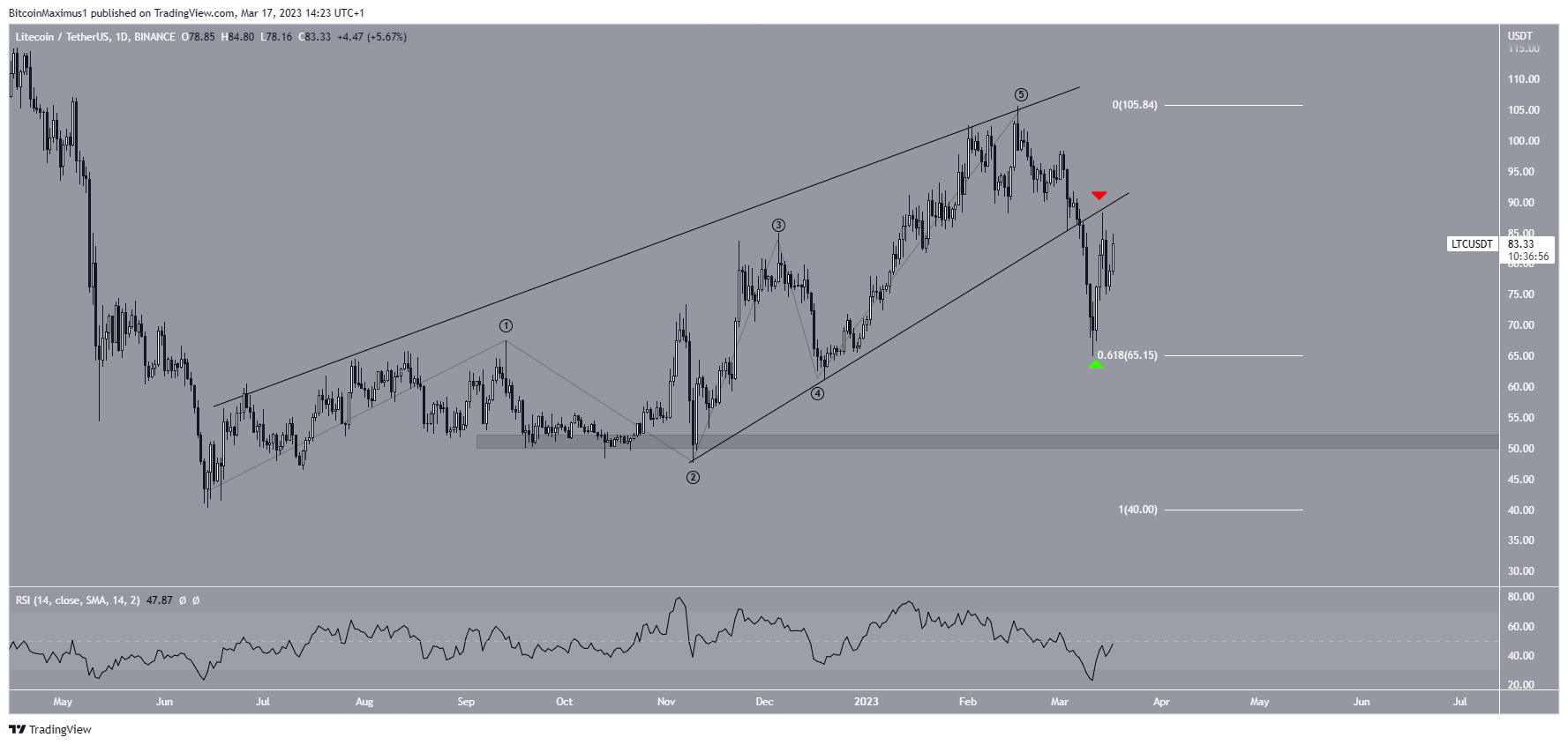 Moreover, the daily RSI has fallen below 50, a sign of a bearish trend. The LTC price seems to have completed a five-wave upward movement, which took the shape of a leading diagonal.Â