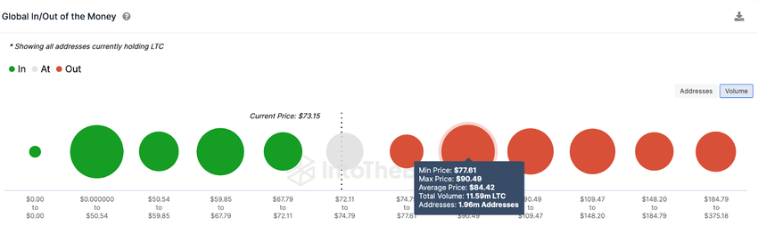 The Global In/Out of the Money (GIOM) data, which groups the current Litecoin investors according to their entry prices, also confirms this bullish LTC price prediction.