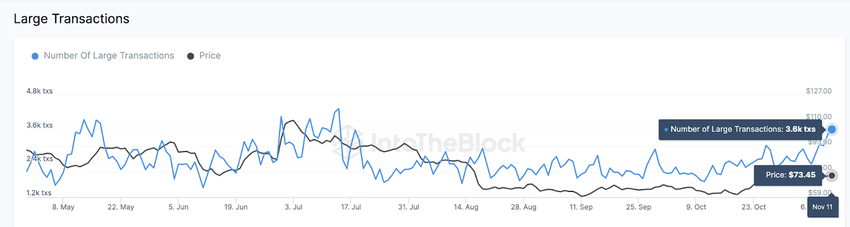 The chart below illustrates how the number of LTC Whale Transactions has consistently increased over the last 30 days. On Nov. 11, it hit a four-month peak of 3,600 large transactions.