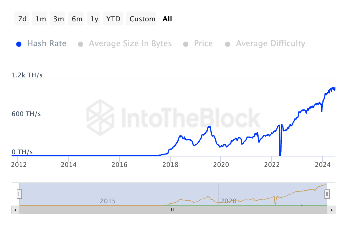 A network’s hashrate refers to the computational power used to mine and process transactions on a blockchain.