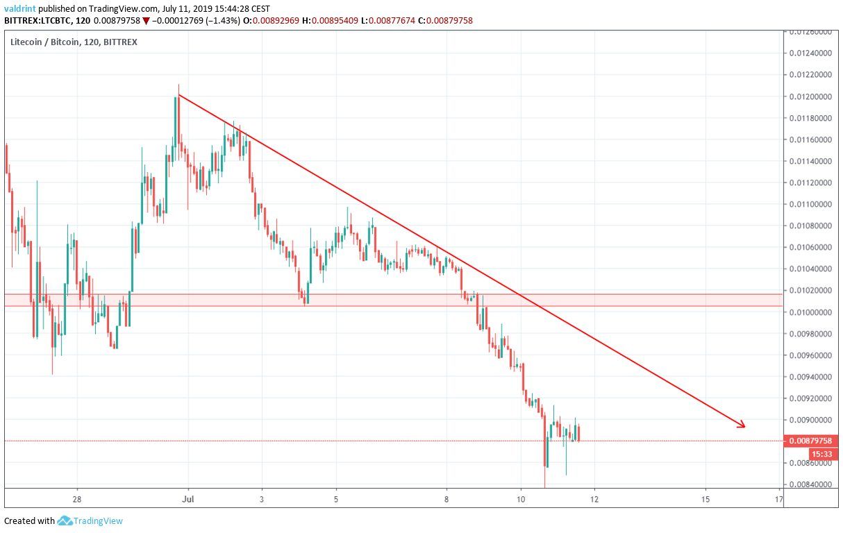 On June 30, 2019, the Litecoin price reached a high of ₿0.0121. A decrease ensued. After a weak bounce at ₿0.01, the LTC price continued its downward movement.