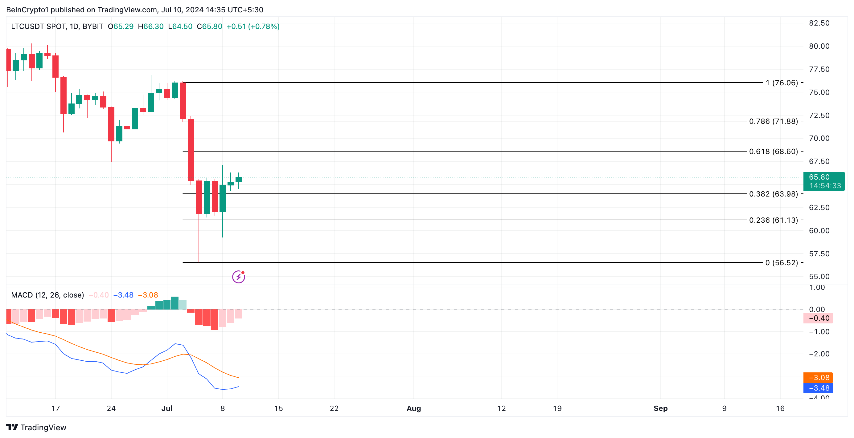 Readings from LTC’s Moving average convergence/divergence (MACD) indicator confirm the bearish bias toward the altcoin. Traders use this indicator to gauge price trends, momentum, and potential buying and selling opportunities in the market.